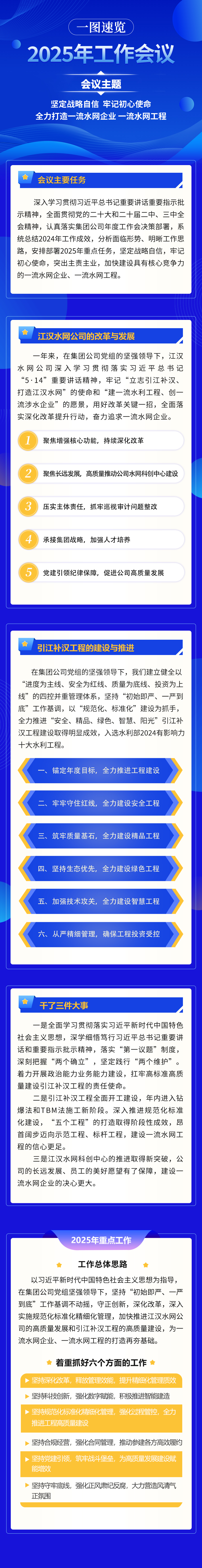 1月21日,中國(guó)南水北調(diào)集團(tuán)江漢水網(wǎng)建設(shè)開發(fā)有限公司召開2025年工作會(huì)議。集團(tuán)黨組副書記、總經(jīng)理孫志禹出席會(huì)議并講話。