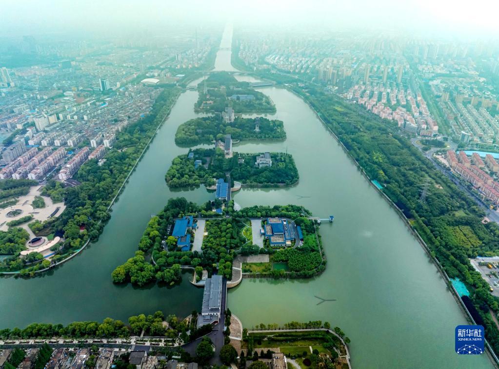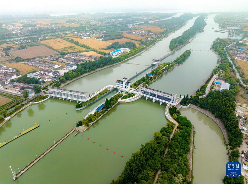 這是6月1日拍攝的位于江蘇省揚(yáng)州市江都區(qū)的南水北調(diào)東線一期工程運(yùn)鹽閘、邵仙套閘、邵仙閘洞(無(wú)人機(jī)照片)。
