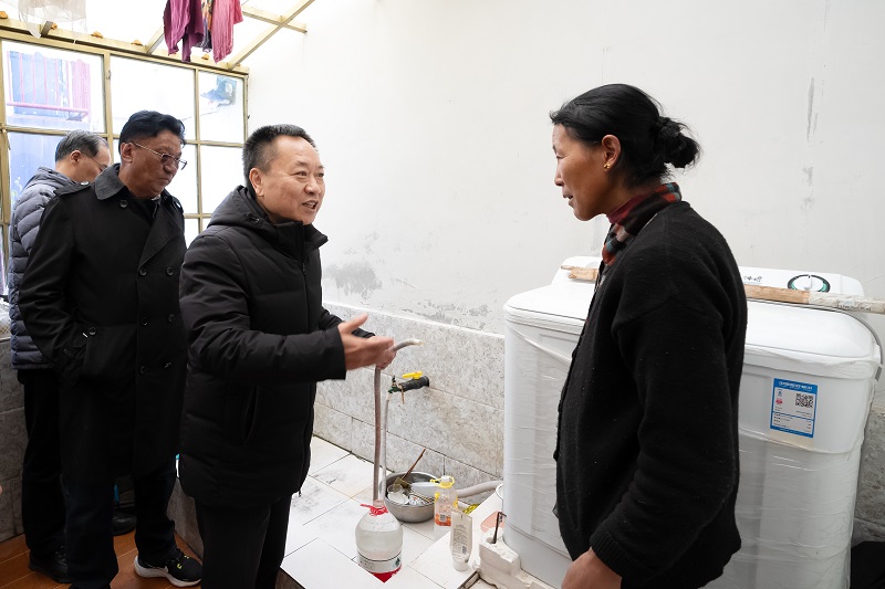 普蘭縣普蘭鎮(zhèn)科迦村是地處中國(guó)、印度、尼泊爾三國(guó)交界處的邊境一線村。李國(guó)英來(lái)到科迦村三組、五組,深入了解農(nóng)村供水水源、管網(wǎng)運(yùn)行、水質(zhì)監(jiān)測(cè)、工程維修養(yǎng)護(hù)等情況。李國(guó)英指出,保障農(nóng)村飲水安全是廣大農(nóng)牧民群眾最關(guān)心的切身利益,是強(qiáng)邊富民的重要支撐。要因地制宜推進(jìn)城鄉(xiāng)供水一體化、集中供水規(guī)模化建設(shè),統(tǒng)籌水源、水廠、管網(wǎng)、用戶、監(jiān)管、服務(wù)各環(huán)節(jié),建立健全從水源到水龍頭的全鏈條農(nóng)村飲水安全保障體系。針對(duì)西藏以分散式供水為主的現(xiàn)狀,要以縣域?yàn)閱卧?,?qiáng)化小型供水工程標(biāo)準(zhǔn)化、規(guī)范化、專業(yè)化建設(shè)和管理,加強(qiáng)水質(zhì)監(jiān)測(cè),推廣有效實(shí)用的凈化消毒設(shè)施設(shè)備,建立健全縣域統(tǒng)一管理、統(tǒng)一運(yùn)維、統(tǒng)一服務(wù)的工作機(jī)制,實(shí)現(xiàn)監(jiān)管服務(wù)全覆蓋。
