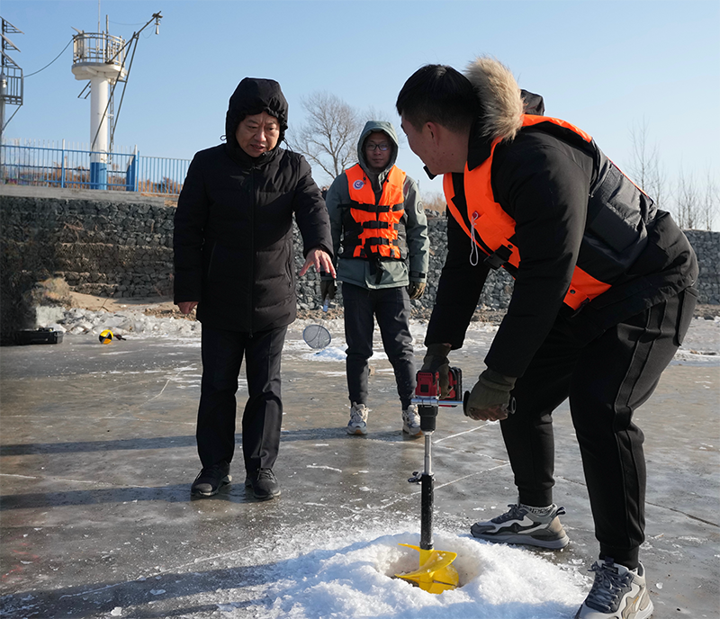 李國英調(diào)研鄭家屯水文站水下測量情況