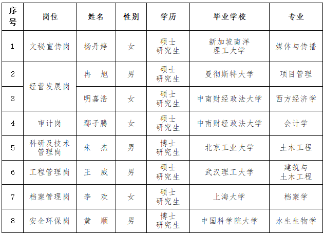 根據(jù)有關(guān)要求,現(xiàn)將江漢水網(wǎng)公司2022年度夏季校園招聘工作人員結(jié)果予以公示: