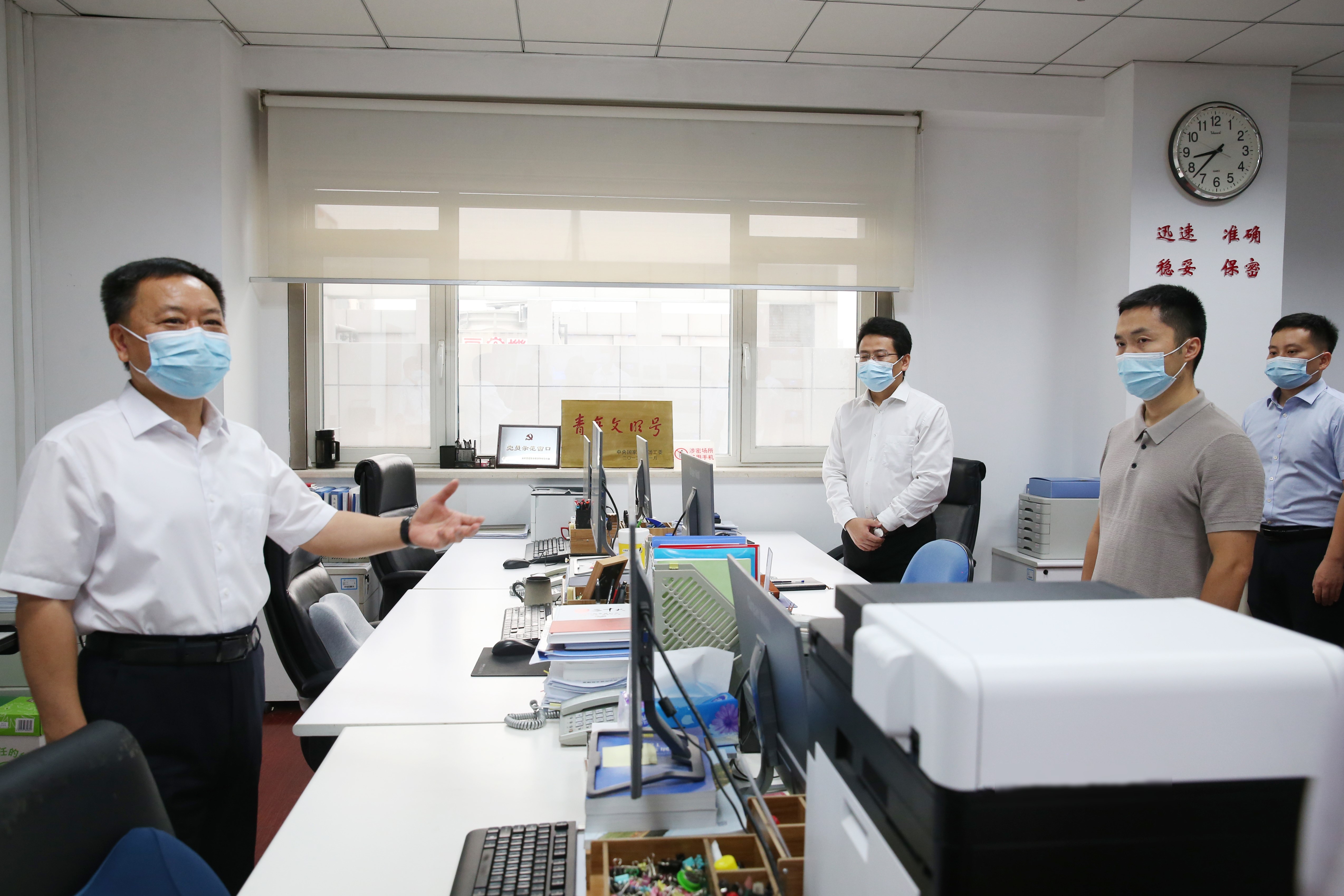李國(guó)英深入機(jī)關(guān)中控室,實(shí)地察看安防設(shè)施設(shè)備運(yùn)行狀況,了解機(jī)關(guān)大院安全、疫情防控等情況。他叮囑值班人員,要時(shí)刻繃緊安全這根弦,全面檢視風(fēng)險(xiǎn)隱患和薄弱環(huán)節(jié),高度重視重點(diǎn)風(fēng)險(xiǎn)源的信息采集和預(yù)警,做到風(fēng)險(xiǎn)管控關(guān)口前移,提前準(zhǔn)備處置預(yù)案,確保機(jī)關(guān)安全運(yùn)行。