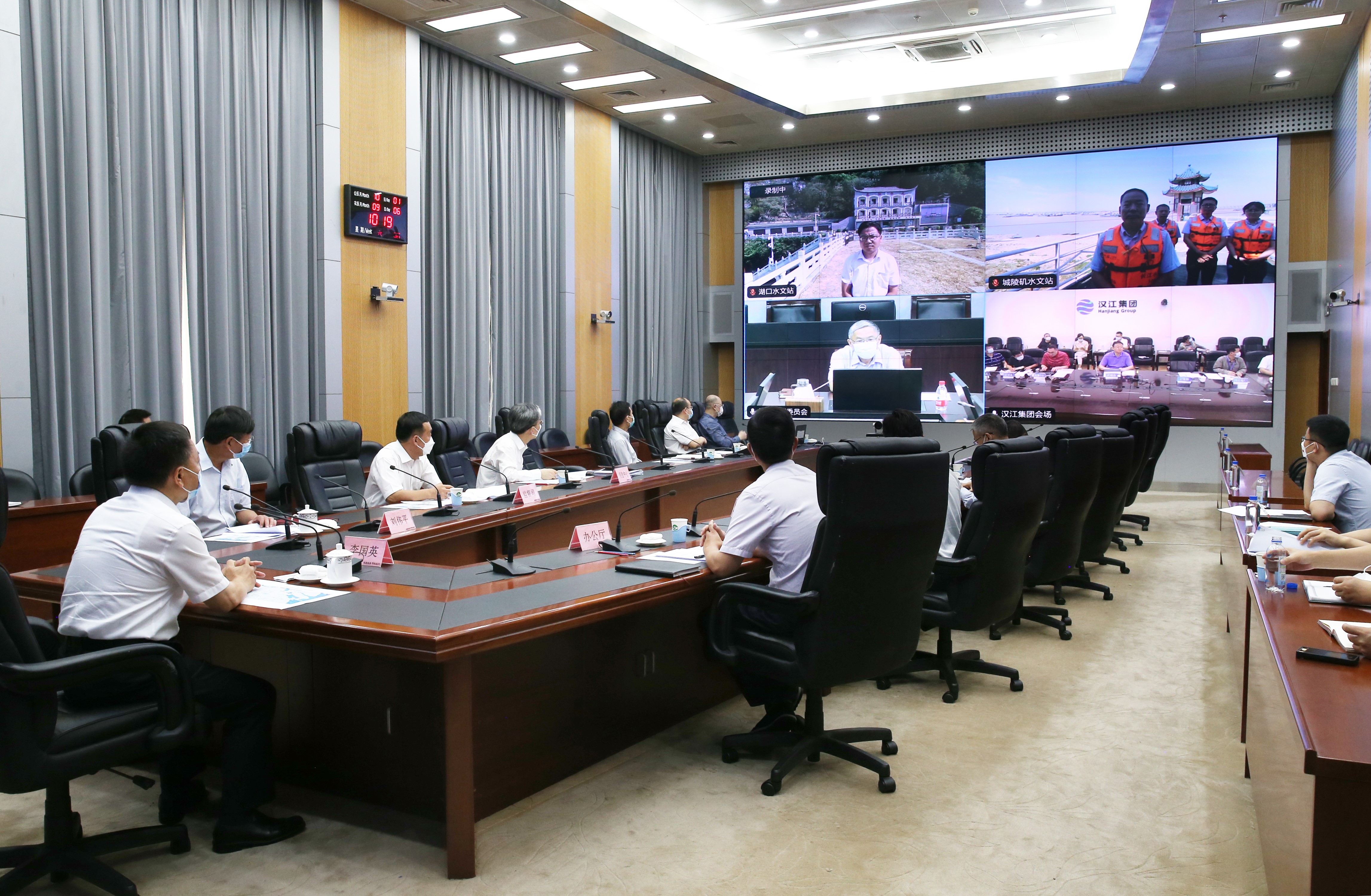 李國(guó)英在國(guó)家水工程調(diào)度指揮中心進(jìn)行視頻連線