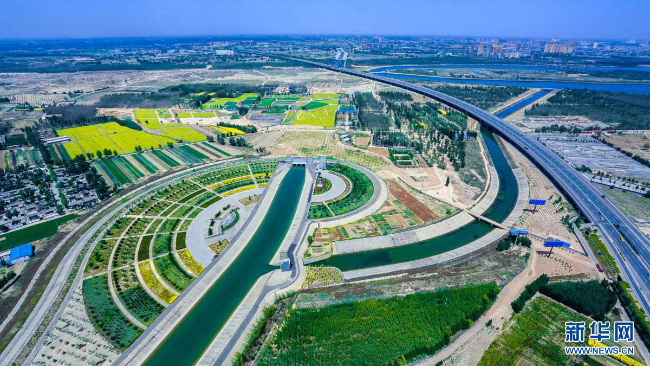 航拍南水北調(diào)中線干線滹沱河倒虹吸工程進口明渠段。河北省水利廳供圖
