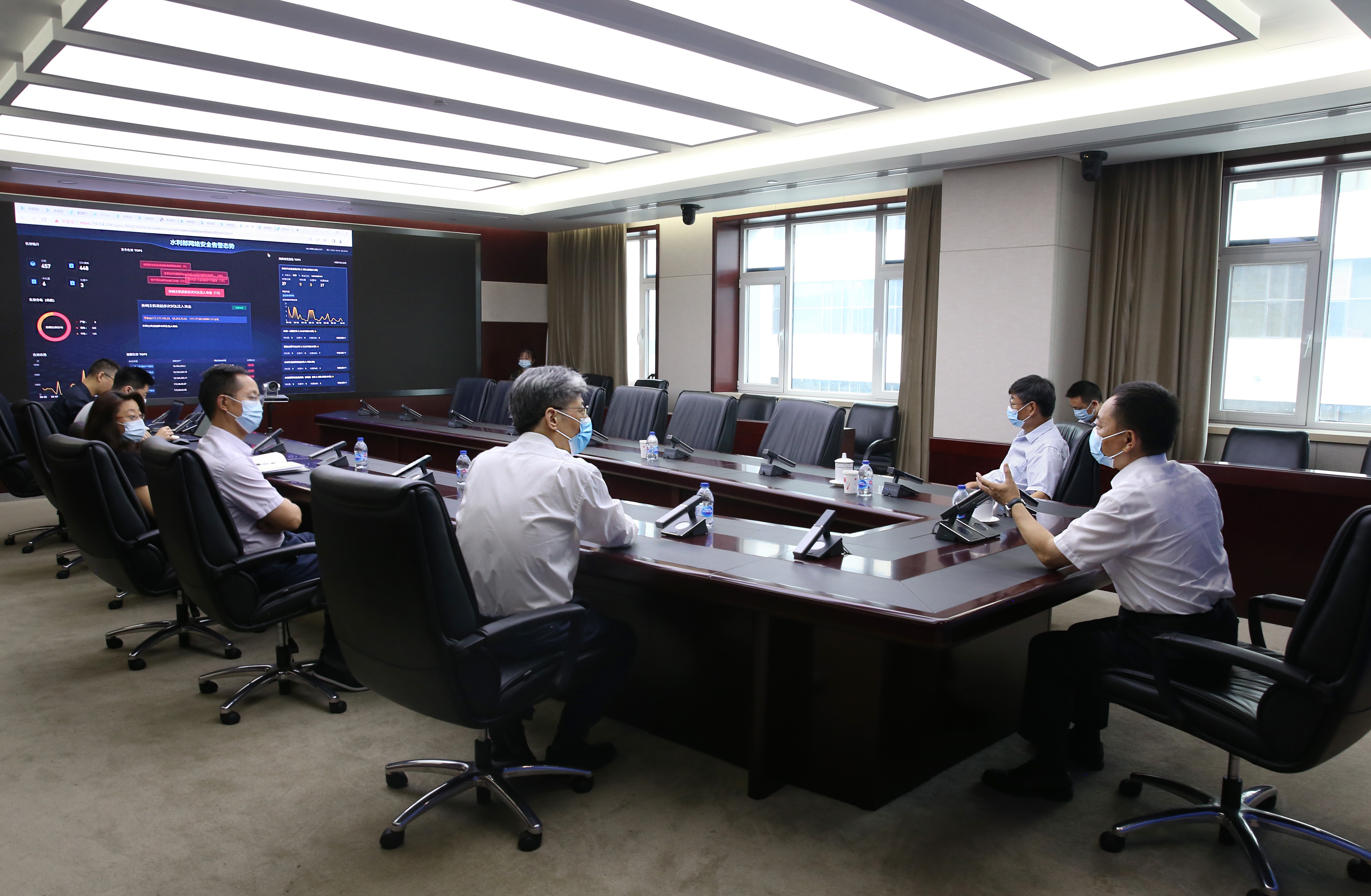 李國(guó)英在國(guó)家水工程調(diào)度指揮中心進(jìn)行視頻連線